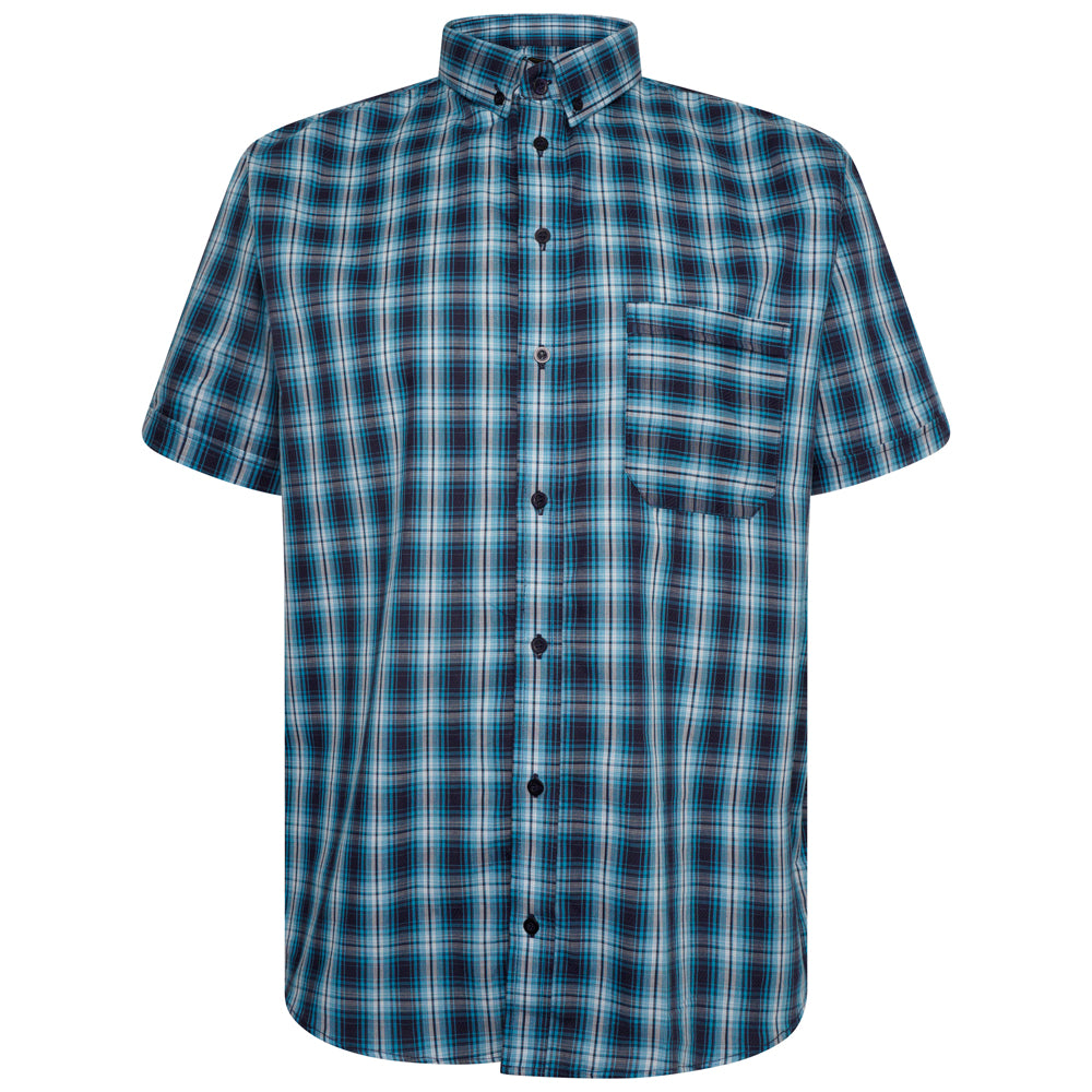 Enhance your smart-casual wardrobe with this short sleeve shirt from Forge. Featuring a Navy, sky & white multi check, it boasts a classic button-down collar, single chest pocket and button front fastenings. Pair with navy chinos for a winning weekend look. Available in big men’s sizes 2XL to 8XL
