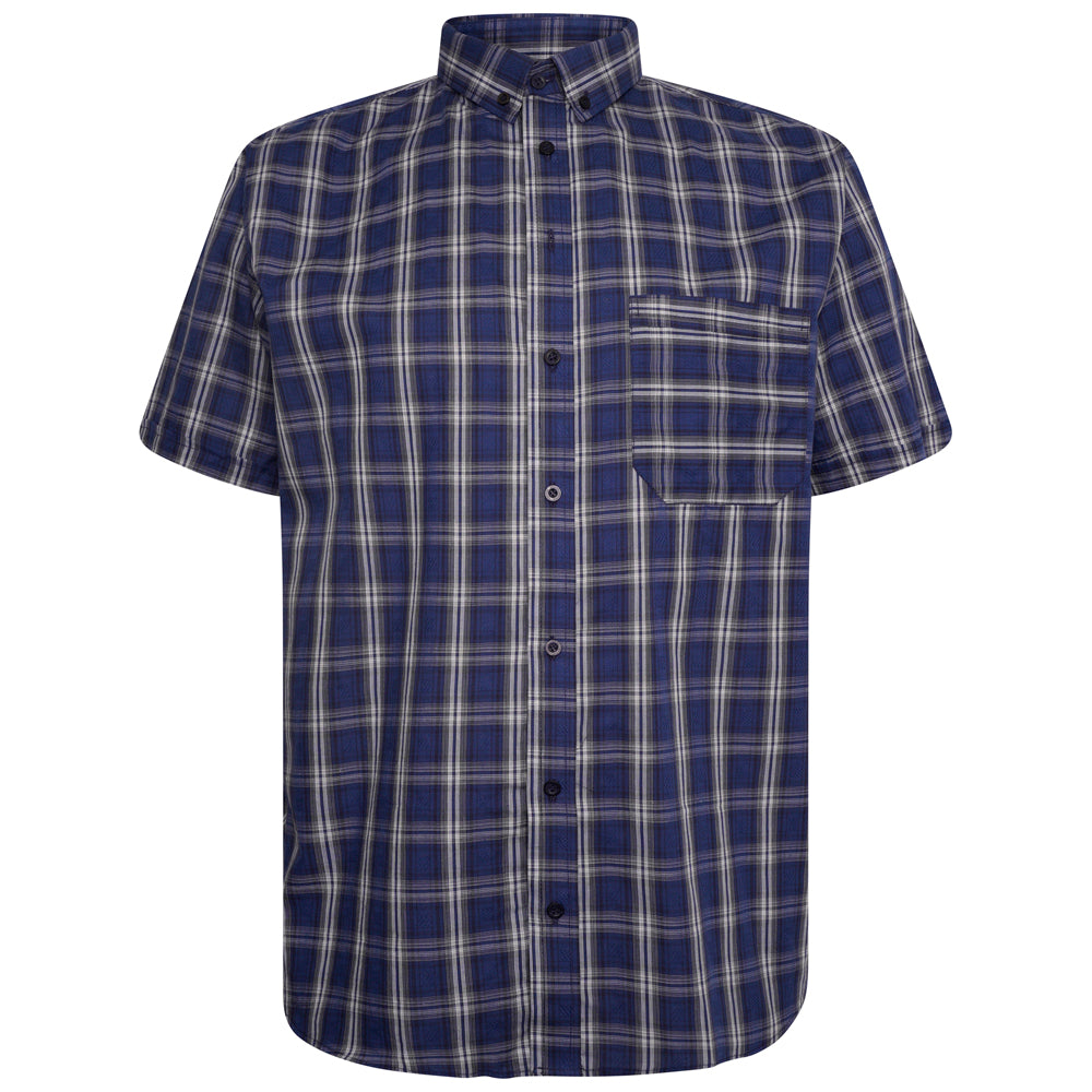 Enhance your smart-casual wardrobe with this short sleeve shirt from Forge. Featuring a Royal, navy & white check, it boasts a classic button-down collar, single chest pocket and button front fastenings. Pair with navy chinos for a winning weekend look. Available in big mens sizes 2XL to 6XL
